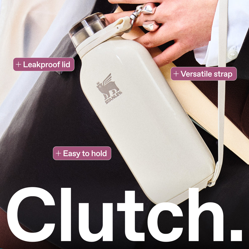 Stowable, wearable and sleek, this is leakproof hydration built to fit your life seamlessly. The Clutch Bottle’s unique, comfortable shape is easy to carry or slip into your bag. Go hands-free with the included wrist strap or add a longer strap when you’re feeling over the shoulder or crossbody carry. Dressing up or going casual, it’s the accessory that completes the look.