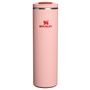 The 20-ounce Transit Flip Top Mug has premium AeroLight™ technology that makes it significantly lighter than standard stainless steel. Featherweight spun-steel with vacuum insulation keeps your drink at the right temperature for hours. Matching soft silicone at the lid tab and footpad makes opening, closing and set downs quieter.